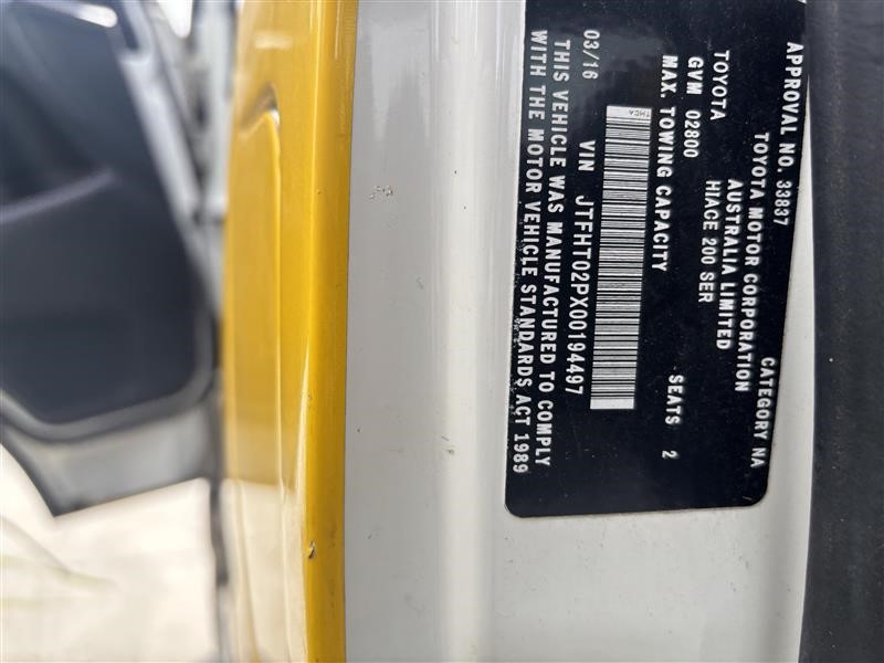 2016 Toyota Hiace 200 Series RWD Automatic Van Body Type: Van Compliance Date: 06/2016 VIN: JTFHT02PX00194497 Registration Expiry Date: Sold Unregistered, Without Plates No. of Cylinders: 4 Fuel Type: Diesel Drive Type: RWD Transmission: Automatic Indicated Odometer Reading: 100,251 Kms Exterior Colour: Yellow Interior Colour: Grey General Condition for age and distance travelled: Key: Yes Spare Key: No Owners Manual: No Service History: No Engine Turns Over: Yes The below condition assessment is the opinion of our booking staff which may differ from your own opinion: DamageAssessmentList_UNDEFINED Comments: ABS Brakes, Interior Damage: Mark and scratches consistent with age $ Km`s; Exterior Damage: Mark, dents and scratches consistent with age $ Km`s; Features: Drivers Airbag Power Steering Location: National Storage 32 Hoepner Rd Bundamba QLD 4304 Motor Dealer Licence: 3651988 (SN:JTFHT02PX00194497) (131658-3) GST Note: GST is included in the final bid price of this item. GST is included in the buyers premium. Debit Card / Credit Card / PayPal surcharge fee may apply. See User Agreement