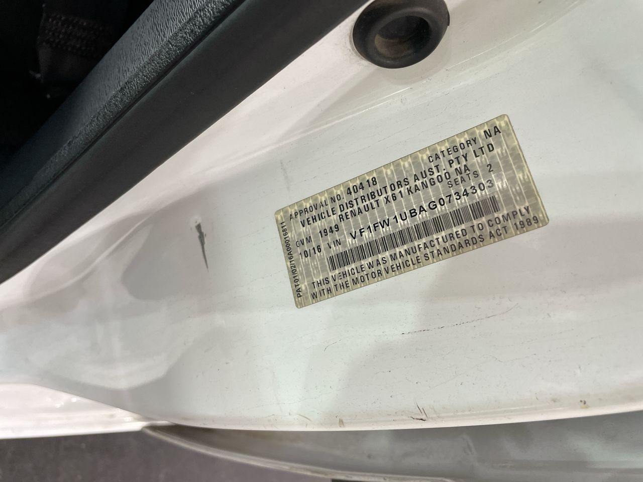 2016 Renault Kangoo Automatic Van Body Type: Van No. of Seats: 2 Build Date: 2016-03 Compliance Date: 2016-10 VIN: VF1FW1UBAG0734303 Registration No: No plates Registration State: VIC Registration Expiry Date: Sold Unregistered, Without Plates No. of Plates: 0 No. of Cylinders: 4 Engine Capacity: 1.6 Fuel Type: Petrol Transmission: Automatic Indicated Odometer Reading: 186718 Odometer Measurement: kilometre Exterior Colour: White Interior Colour: Black General Condition for age and distance travelled: Key: Yes Spare Key: No Owners Manual: Yes Service History: Partial Engine Turns Over: Yes The below condition assessment is the opinion of our booking staff which may differ from your own opinion: Seat Torn Drivers Door Handle Not Working or Broken. Medium Scratch on Around vehicle Engine idling rough Dents or marks on body consistent with age and kilometres. Features: Air Conditioning CD Player Climate Control Driver Airbag Electric Windows MP3 Capability Power Steering Location: 140-152 National Drive, Dandenong South, VIC, 3175 Key No: 523 (367199) Motor Dealer Licence: LMCT-11100 (SN:VF1FW1UBAG0734303) (139483-1) GST Note: GST is included in the final bid price of this item. GST is included in the buyers premium. Debit Card / Credit Card / PayPal surcharge fee may apply. See User Agreement