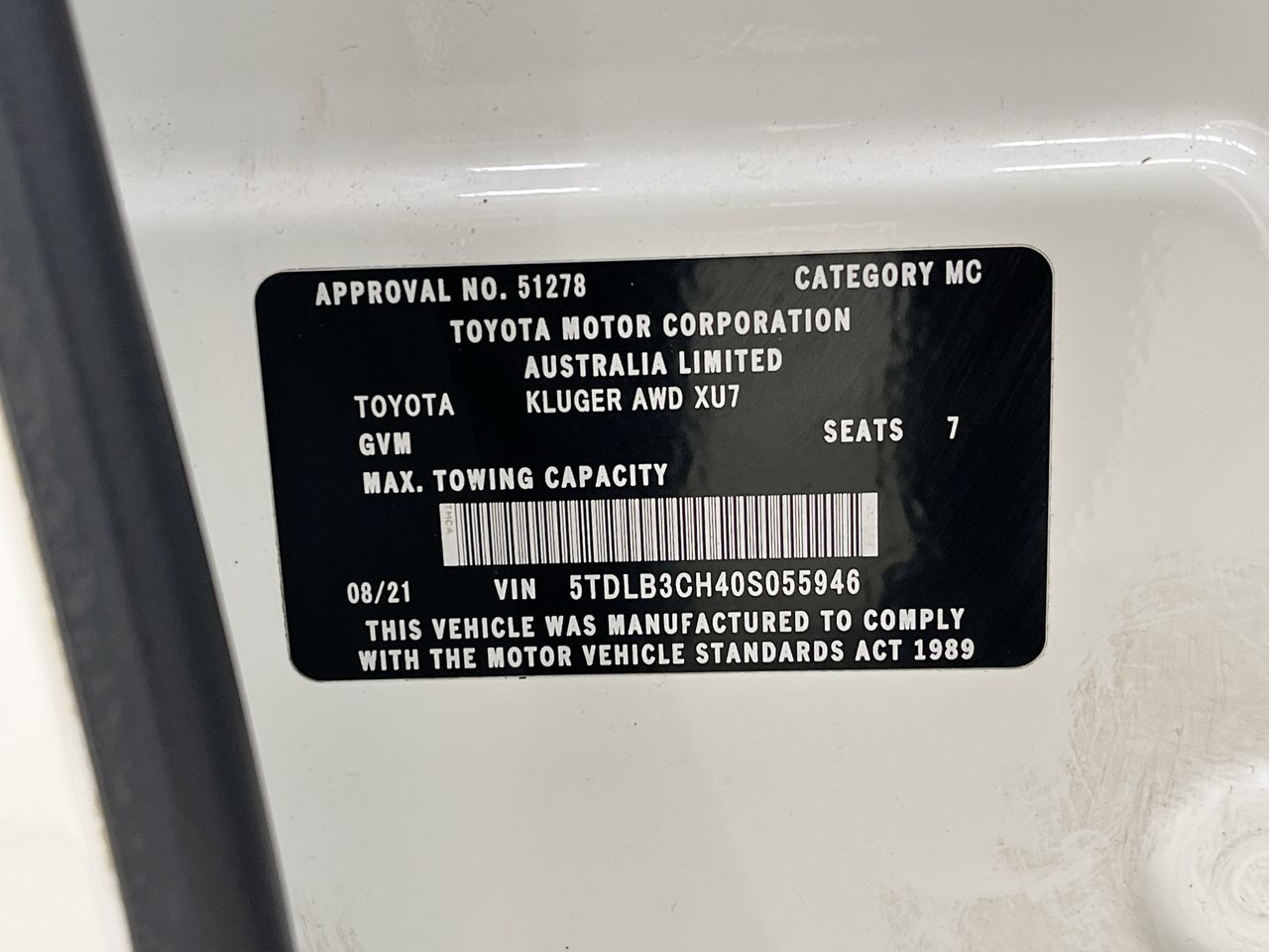 2021 Toyota Kluger 4X4 GX HYBRID AXUH78R CVT 7 Seats Wagon Body Type: Wagon No. of Seats: 7 Build Date: 2021-06 Compliance Date: 2021-08 VIN: 5TDLB3CH40S055946 Registration No: 1UP1PB Registration State: VIC Registration Expiry Date: 05-10-2026 - Registration will only be transferred to the registered bidder who must hold a valid VIC Drivers Licence otherwise vehicle will be sold unregistered. No. of Plates: 2 No. of Cylinders: 4 Engine Capacity: 2.5 Fuel Type: Hybrid Drive Type: Part-Time 4WD Transmission: CVT Indicated Odometer Reading: 144925 Odometer Measurement: kilometre Exterior Colour: White Interior Colour: Black General Condition for age and distance travelled: Key: Yes Spare Key: Yes Owners Manual: Yes Service History: Yes Engine Turns Over: Yes The below condition assessment is the opinion of our booking staff which may differ from your own opinion: Medium Scratch on Around vehicle Medium Dent on Around vehicle Windscreen Chipped or Cracked. Features: Air Conditioning Auto Control Central Locking Climate Control Driver Airbag Electric Windows Hill Holder System MP3 Capability Power Steering Reversing Camera Third Row Seat Crash Test Star Rating 5 Location: 140-152 National Drive, Dandenong South, VIC, 3175 Key No: 258 (372308) Motor Dealer Licence: LMCT-11100 (SN:5TDLB3CH40S055946) (126557-997) GST Note: GST is included in the final bid price of this item. GST is included in the buyers premium. Debit Card / Credit Card / PayPal surcharge fee may apply. See User Agreement